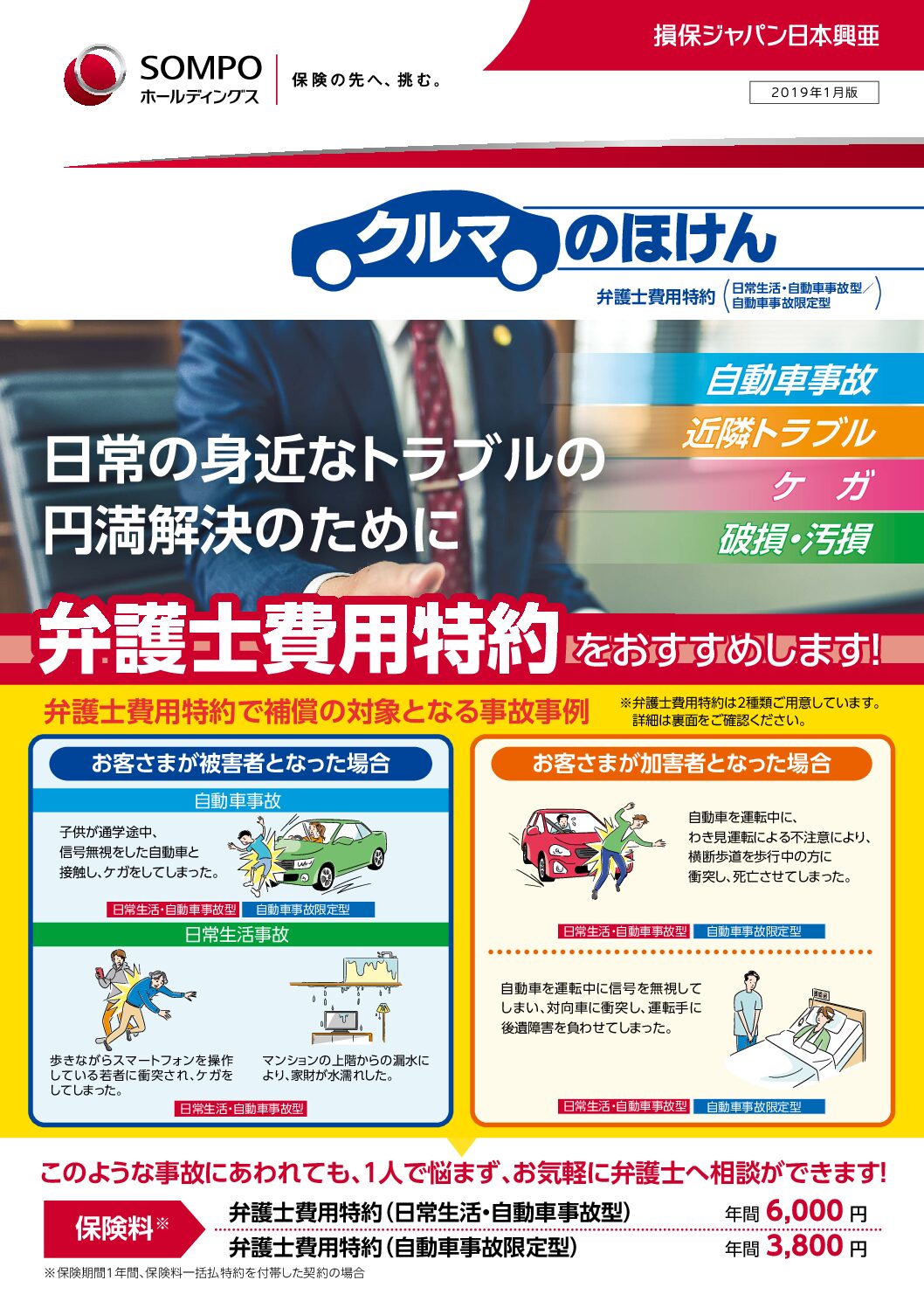 HOME>新着情報 「日常生活安心パッケージ」2020年2月26日2020年12月3日 自転車事故はもちろん、日常生活におけるトラブルの備えとして 「日常生活安心パッケージ」をおすすめします!! ・弁護士費用特約(日常生活・自動車事故型) ・個人賠償責任特約 新着情報